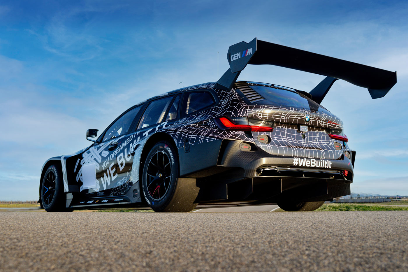 Um Gewicht zu sparen und die Leistung auf ein Niveau zu bringen, das einem GT3-Rennwagen entspricht, wurde der Großteil der komplett neuen Karosserie aus Kohlefaser gefertigt. Die hinteren Türen des radikalen Kombis erfüllen dabei nicht mehr ihre ursprüngliche Funktion – sie sind lediglich fest montierte Karosserieelemente. Realistisch betrachtet hätte dort wohl ohnehin niemand mehr einen Kindersitz montiert.