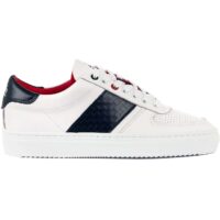24h-Rennen Le Mans Sneaker in weiß Der weiße Sneaker aus hochwertigem Leder ist mit blauen Applikationen und Logos des 24h-Rennen von Le Mans versehen. Der stylische Schuh lässt sich mit fast jedem Outfit kombinieren. Die Verarbeitung in Handarbeit und die Materialauswahl machen dieses Modell einzigartig. 24h-Rennen Le Mans Logo Design Gummisohle aus 100% Leder gefertigt Das 24h-Rennen von Le Mans gehört zu den legendärsten Langstrecken-Rennen der Welt und wird seit 1923 jährlich ausgetragen. Zur 24h-Rennen Le Mans Kollektion gehören neben Schuhen noch weitere Produkte wie Shirts Pullover Caps und diverse Accessoires. Stylischer Schuh vom 24h Le Mans. Kombinierbar mit fast allen Outfits. Aus besonders hochwertigem Material mit Event-Logo.