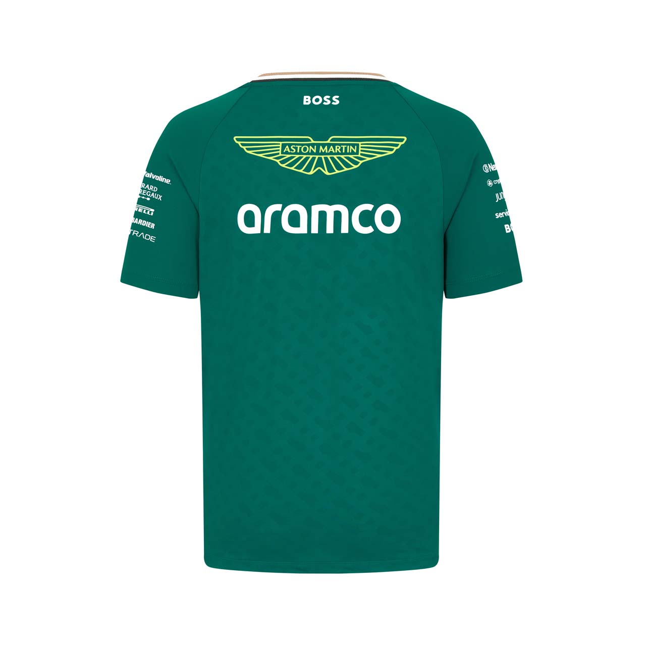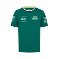 Aston Martin F1 Kinder Team T-Shirt Das offizielle Team T-Shirt für Kinder des Aston Martin Formel 1 Teams im stylischen Racing Green. Auf Brusthöhe sind neben dem Aston Martin – Emblem weitere Sponsoren-Logos aufgedruckt. Das Aston Martin Logo findet sich auch auf der Rückseite wieder. Das Material besteht aus pflegeleichtem Polyester mit Elasthan-Zusatz. offizielles Aston Martin Produkt mit Aston Martin F1 Team Logo Rundhalsausschnitt in verschiedenen Größen erhältlich aus 96% Polyester / 4% Elasthan hergestellt Das Aston Martin F1 Team T-Shirt ist Teil der Aston Martin F1 Team Kollektion die neben T-Shirts auch andere Produkte wie Pullover Jacken und Caps beinhaltet. Das offizielle Team T-Shirt für Kinder des Aston Martin Formel 1 Teams im stylischen Racing Green. Hergestellt aus 96% Polyester / 4% Elasthan.