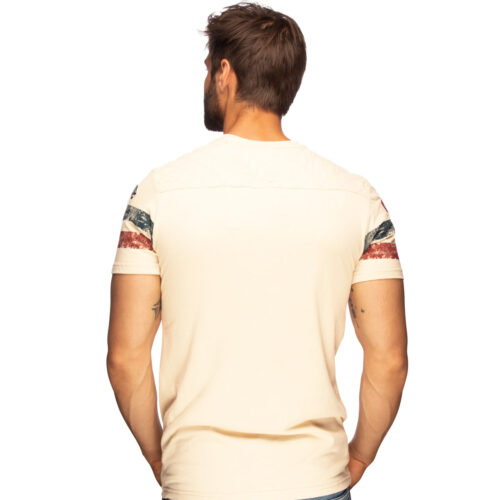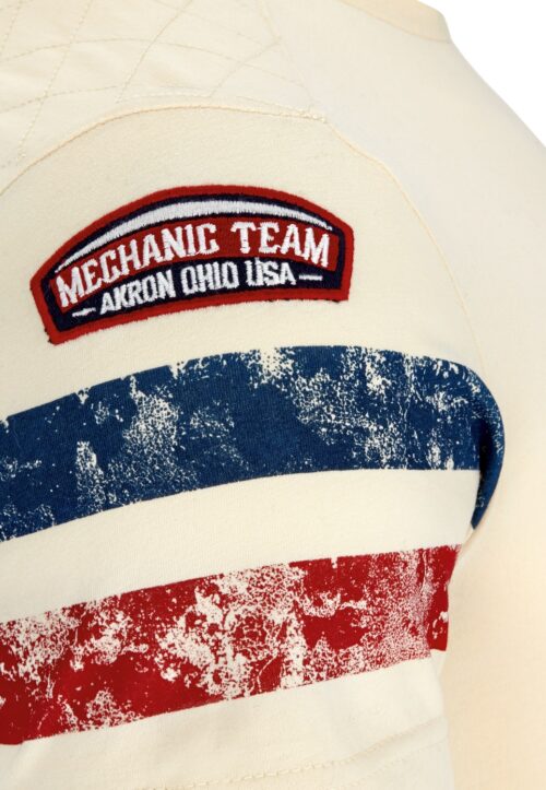 Goodyear T-Shirt Grand Bend im Farbton Vintage Sand Das T-Shirt Grand Bend im Farbton Vintage Sand aus hochwertiger Baumwolle zeigt auf der Vorderseite das Goodyear Logo im Vintage-Look. Weitere Goodyear Logos finden sich als Stickerei zusammen mit Rennstreifen in blau und rot auf den Ärmeln. Das eingearbeitete Nackenband sowie der zusätzlich gestickte Einsatz im Schulter- und Nackenbereich gepaart mit der eng anliegende Passform sorgen für einen angenehmen Tragekomfort. Goodyear Logo Design Herrengröße eng anliegende Passform aus 100% Baumwolle gefertigt Das Unternehmen Goodyear gehört seit Beginn des Siegeszugs des Automobils zur dessen Geschichte. Zur Goodyear Kollektion gehören neben T-Shirts noch weitere Produkte wie Poloshirts Sweatshirts und Jacken. Das Goodyear T-Shirt Grand Bend im Farbton Vintage Sand aus 100% Baumwolle gefertigt.