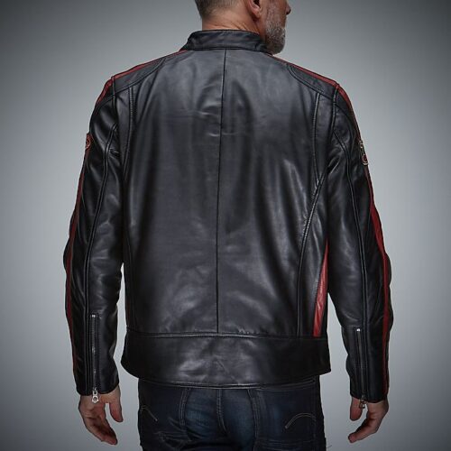 Leichte Lederjacke von Grand Prix Originals aus Lammleder in einem tollen schwarzen Farbton. Mit abgesetzten Racingstreifen Aufnähern und vier Taschen mit Reißverschlüssen. Für den perfekten Look! Washed look – dadurch fällt dieses Modell eher kleiner aus. Leichte Lederjacke von GPO aus Lammleder in einem tollen schwarzen Farbton. Mit abgesetzten Streifen Aufnähern und 4 Taschen mit Reißverschlüssen.