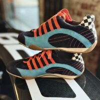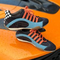 Der Gulf GPO Lady Racing Sneaker blue-suede Das Model blue-suede für Damen im klassischen Racing Sneaker Design ist namentlich an die 1950er Jahre Songs von Carl Perkins und Elvis Presley angelehnt. Mit dieser Farb-Melange ist der Schuh eine Hommage an die Rockabilly Stilrichtung und kombiniert mit Jeans und den passenden Gulf T-Shirts oder Jacken der perfekte Begleiter auch neben der Tanzfläche. Die Grandprix Sneaker Kollektion wurde speziell entwickelt um den optimalen Schuh zum Autofahren zu haben und gleichzeitig bequemes und präzises Laufen und Stehen zu ermöglichen. Die abgerundete Ferse welche aus der Rennsport-Bekleidung übernommen wurde unterstützt den Halt des Fußes und ermöglicht wohldosiertes Gas geben ohne den Tragekomfort zu mindern. Abgerundet wird der Schuh durch die eingeprägten Schriftzügen GRANDPRIX und ORIGINALS. hergestellt in Portugal Frauengröße aus der Grandprix Originals Kollektion Obermaterial aus 100% Rindsleder Sohle aus reinem Naturkautschuk Der Gulf GPO Racing Sneaker blue-suedefür Damen. Aus 100% Rindsleder hergestellt in Portugal. Sehr bequem durch perfekte Passform.