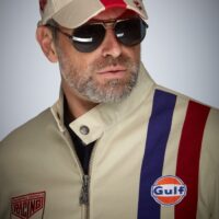 Sandfarbene Canvasjacke vom Rennsportteam Gulf. Die Jacke ist aus bestem Baumwollstoff und hat die klassischen blauen und roten Racingstreifen dazu fein gestickte Logos aus dem historischen Motorsport. Sportlich geschnitten und mit Reissverschlüssen am Armende. Sandfarbene Canvasjacke vom Rennsportteam Gulf. Die Jacke ist aus bestem Baumwollstoff und hat die klassischen blauen und roten Racingstreifen.