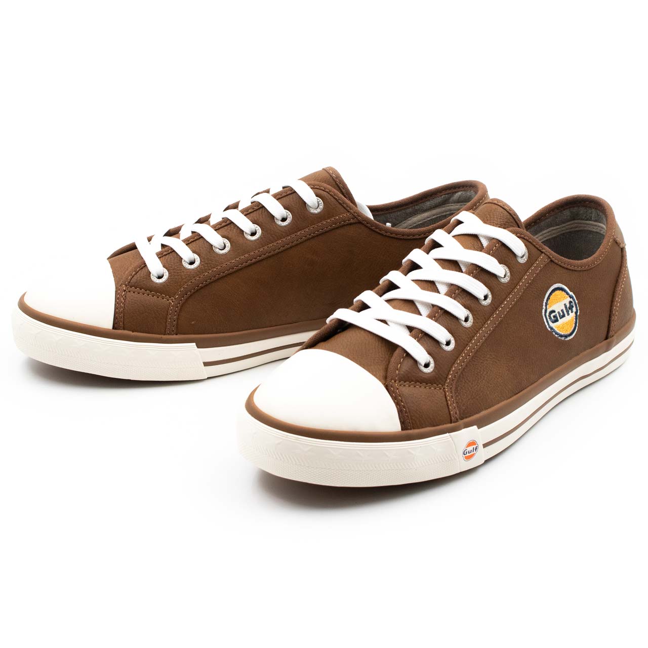 Gulf Sneaker Men cognac Der berühmte Kultschuh vom Rennsportteam Gulf – nun als neue Edition aus Kunstleder in einem tollen cognac Farbton. Der stylische Schuh lässt sich mit fast jedem Outfit kombinieren. Die hochwertige Verarbeitung und die Materialauswahl machen dieses Modell einzigartig. Gummisohle Herrengröße aus 100% Kunstleder mit offiziellem Gulf-Logo Stylischer Schuh vom Rennsportteam Gulf. Kombinierbar mit fast allen Outfits. Aus besonders hochwertigem Material mit Gulf-Logo.