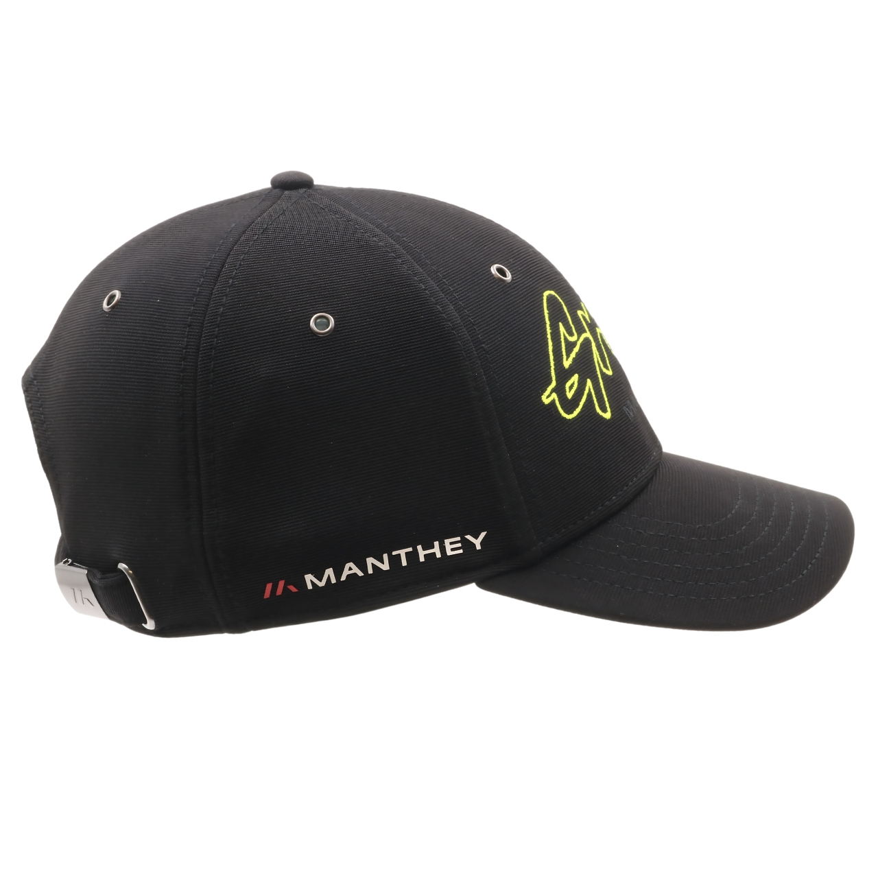 Manthey Cap Grello Outline in schwarz Die Cap Grello Outline in schwarz mit rundem Kappenschirm aus der Manthey Grello-Kollektion 2025 besteht aus pflegeleichtem Polyester mit Elasthan-Zusatz. Neben dem gestickten Grello Schriftzug auf der Front ist das Manthey-Logo auf der Seite angebracht. Zum Einstellen der Größe dient ein praktischer Clip-Verschluss. Manthey Grello-Kollektion 2025 mit Grello Schriftzug und Manthey-Logo Clip-Verschluss Einheitsgröße – verstellbar aus 96% Polyester / 4% Elasthan gefertigt Die schwarze Kappe ist Teil der offiziellen Grello-Kollektion welche neben Caps noch weitere Produkte wie T-Shirts Pullover Jacken und mehr mit Manthey-Branding beinhaltet. Manthey Cap Grello Outline in schwarz. Teil der Manthey Grello-Kollektion 2025 hergestellt aus 96% Polyester / 4% Elasthan.
