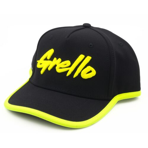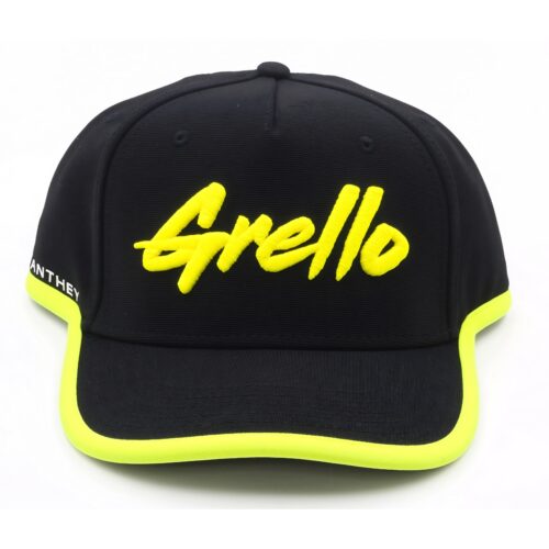 Manthey Cap Grello in schwarz Die Cap Grello in schwarz mit rundem Kappenschirm aus der Manthey Grello-Kollektion 2025 besteht aus pflegeleichtem Polyester mit Elasthan-Zusatz. Neben dem Grello Schriftzug auf der Front ist das Manthey-Logo auf der Seite bedruckt. Weitere Details sind die gelben Applikationen am Kappenschirm und unterem Rand sowie die elastische Bindung an den Seiten. Zum Einstellen der Größe dient ein praktischer Snap-Verschluss. Manthey Grello-Kollektion 2025 mit Grello Schriftzug und Manthey-Logo Snap-Verschluss Einheitsgröße – verstellbar aus 96% Polyester / 4% Elasthan gefertigt Die schwarze Kappe ist Teil der offiziellen Grello-Kollektion welche neben Caps noch weitere Produkte wie T-Shirts Pullover Jacken und mehr mit Manthey-Branding beinhaltet. Manthey Cap Grello in schwarz. Teil der Manthey Grello-Kollektion 2025 hergestellt aus 96% Polyester / 4% Elasthan.