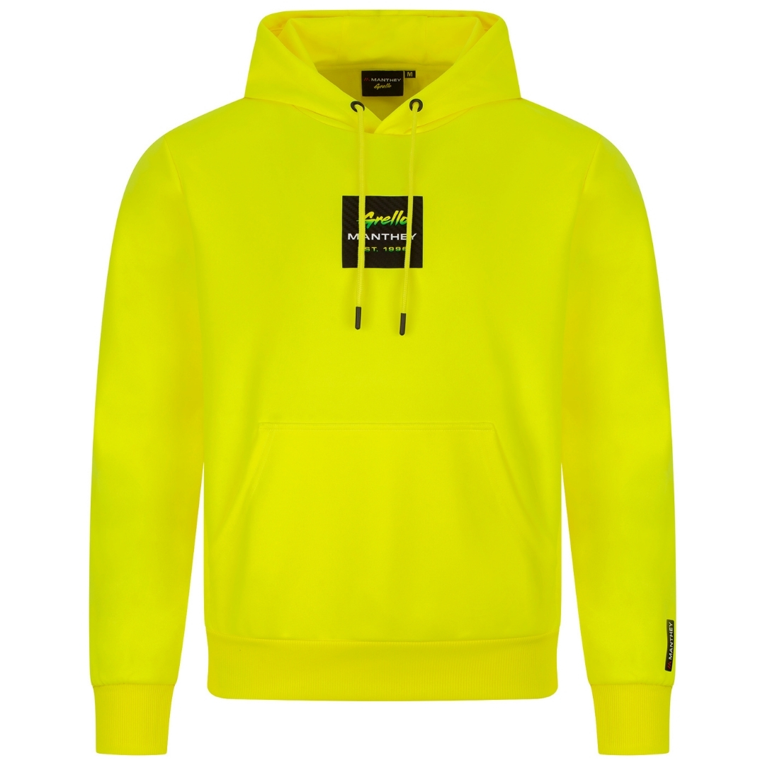 Manthey Kapuzenpullover Grello Est. 1996 in gelb Der Hoodie Est. 1996 in gelb für Herren aus der Manthey Grello-Kollektion 2025 besteht aus pflegeleichtem Polyester. Auf der Vorderseite ist ein Aufnäher mit Grello und Manthey Logo eingearbeitet. Der Pullover mit Kapuze Kängurutasche und eng anliegenden Bündchen ist in einer regulären Passform gefertigt. Manthey Grello-Kollektion 2025 mit Grello und Manthey Logo Kapuze mit Kordelzug Kängurutasche reguläre Passform verschiedene Größen verfügbar aus 100% Polyester gefertigt Der gelbe Pullover mit Kapuze ist Teil der offiziellen Grello-Kollektion welche neben Hoodies noch weitere Produkte wie Caps Shirts Jacken und mehr mit Manthey-Branding beinhaltet. Manthey Kapuzenpullover Grello Est. 1996 in gelb. Teil der Manthey Grello-Kollektion 2025 hergestellt aus 100% Polyester.