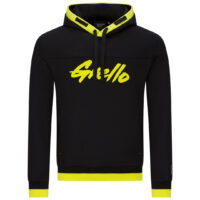Manthey Kapuzenpullover Grello in schwarz Der Grello Hoodie in schwarz für Herren aus der Manthey Grello-Kollektion 2025 besteht aus hochwertiger Baumwolle mit Polyester-Anteil. Auf der Vorderseite ist der Grello Schriftzug gedruckt. Weitere Details sind die gelben Applikationen an der Kapuze und den Bündchen. Der Pullover mit Kapuze Kängurutasche und eng anliegenden Bündchen ist in einer regulären Passform gefertigt. Manthey Grello-Kollektion 2025 mit Grello und Manthey Logo Kapuze mit Kordelzug Kängurutasche reguläre Passform verschiedene Größen verfügbar aus 70% Baumwolle / 30% Polyester gefertigt Der schwarze Pullover mit Kapuze ist Teil der offiziellen Grello-Kollektion welche neben Hoodies noch weitere Produkte wie Caps Shirts Jacken und mehr mit Manthey-Branding beinhaltet. Manthey Kapuzenpullover Grello in schwarz. Teil der Manthey Grello-Kollektion 2025 hergestellt aus 70% Baumwolle / 30% Polyester.