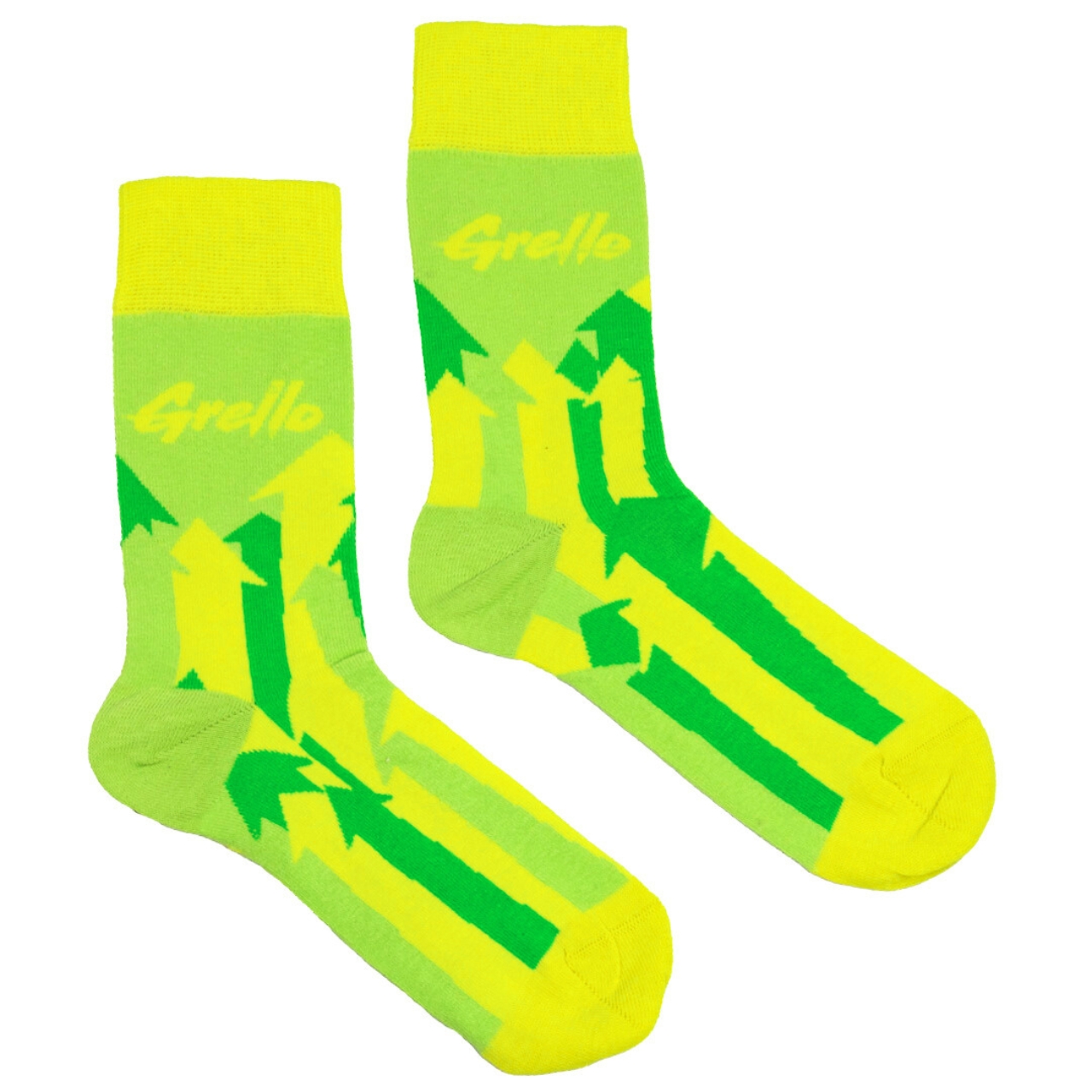 Manthey Socken Racing Grello Die Socken in gelb und grünz aus der Manthey Grello-Kollektion 2023 bestehen aus pflegeleichtem Polyester mit Polyamid- und Elasthan-Zusatz. Über die gesamte Fläche des Sockens ist das Grello Pfeil-Design im Allover-Muster eingearbeitet. Manthey Grello-Kollektion 2023 mit Grello Schriftzug Größen: 38-42 (UK: 5 – 7.5 / US: 6.5 – 8.5) / 43-46 (UK: 8 – 11 / US: 9 – 12) aus 80% Polyester / 18% Polyamid / 2% Elasthan gefertigt Die gelb-grünen Socken sind Teil der offiziellen Grello-Kollektion welche neben Accessoires noch weitere Produkte wie Caps Shirts Pullover und mehr mit Manthey-Branding beinhaltet. Manthey Socken Racing Grello in gelb-grün. Teil der Manthey Grello-Kollektion 2023 hergestellt aus 80% Polyester / 18% Polyamid / 2% Elasthan.