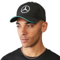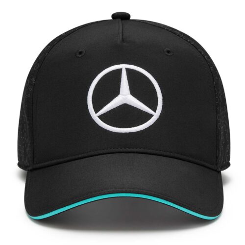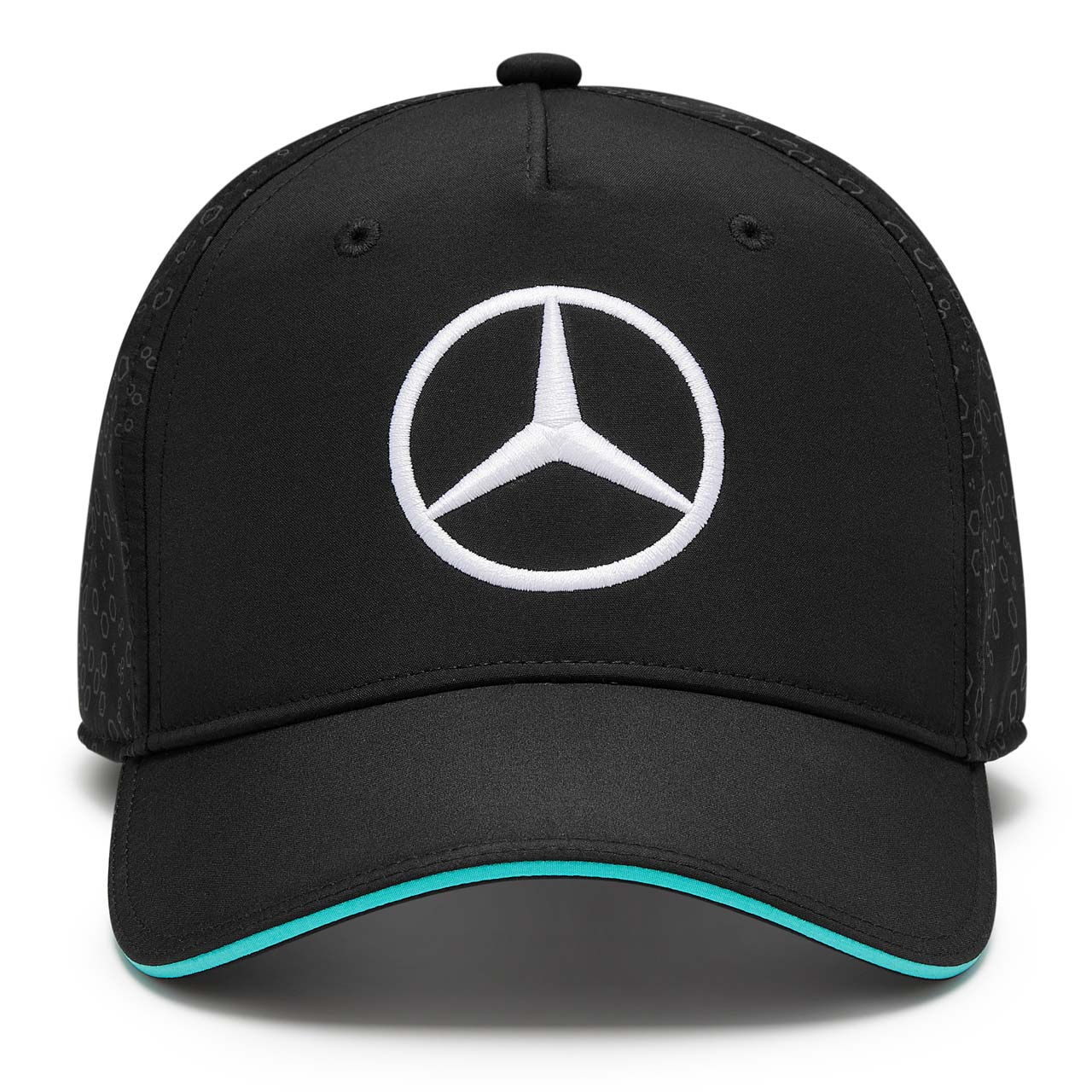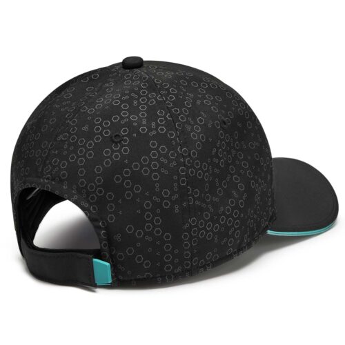 Mercedes-AMG Petronas Team Cap in schwarz Die Team Cap in schwarz ist Teil der offiziellen Mercedes-AMG Petronas F1™ Team-Kollektion und wurde aus 100% Polyester hergestellt. Die Stickerei auf der Front zeigt den Mercedes Stern. Ein weiterer Eyecatcher ist der All-Over Hexagon-Print auf der Rückseite der Cap. Durch den Klettverschluss auf der Rückseite kann die Größe der Kappe individuell eingestellt werden. offizielles Mercedes-AMG Petronas Produkt bestickte Mercedes-AMG Petronas Logos Einheitsgröße – verstellbar Klettverschluss gebogener Schirm aus 100% Polyester gefertigt Mercedes-AMG Petronas Team Cap in schwarz. Aus 100% Polyester mit gebogenem Schirm und Mercedes Logo.