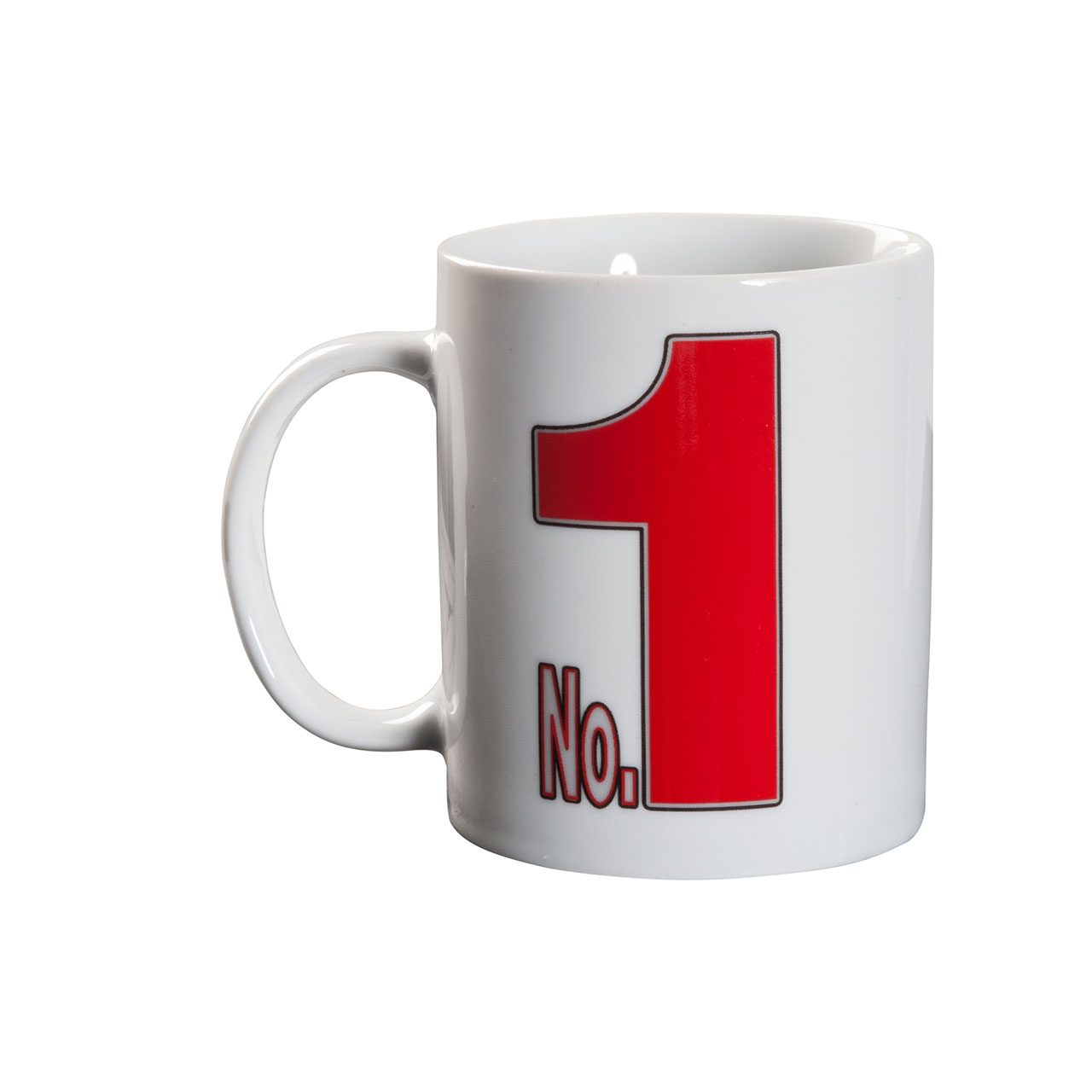 Weiße Tasse von Michael Schumacher mit großem Motivdruck und dem Slogan the one and only GP champ. Ebenso befindet sich ein großer Druck mit No. 1 auf der Tasse. Weiße Tasse von Michael Schumacher mit großem Motivdruck aus Keramik. Fassungsvermögen 300 ml.