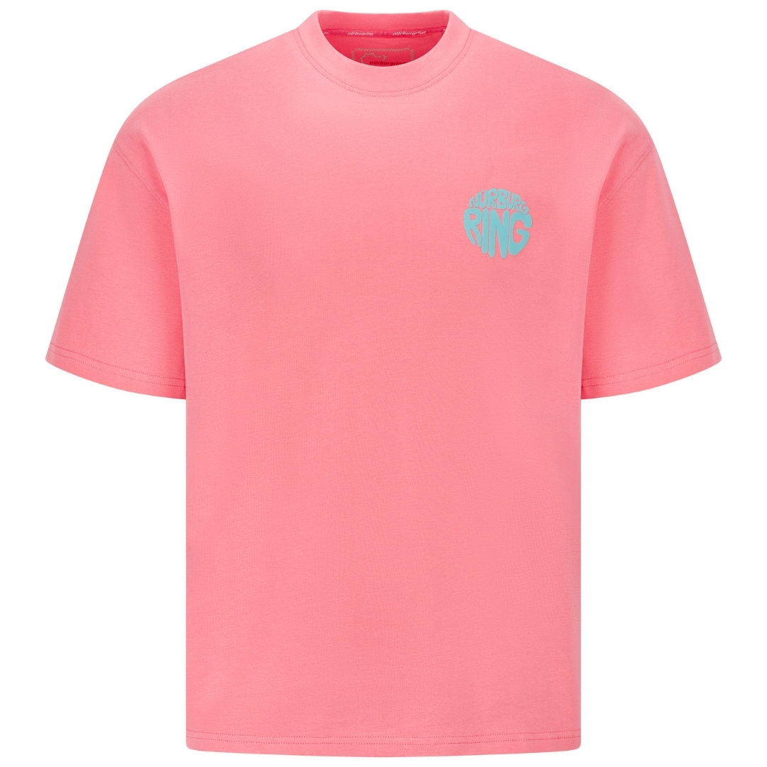 Nürburgring T-Shirt Demanding in pink Das T-Shirt Demanding in pink aus der Nürburgring Fan-Kollektion zeigt auf der Vorderseite das Nürburgring Heart Race Logo. Auf der Rückseite ist ein großer Grafik-Print im Heart-Race-Design zu sehen. Ein weiteres Detail des Shirts aus hochwertiger Baumwolle ist das Nürburgring-Logo im unteren Shirtbereich. Nürburgring Fan Kollektion Heart Race-Design Unisex reguläre Passform aus 100% Baumwolle gefertigt Der Nürburgring gilt als eine der bekanntesten und beliebtesten Rennstrecken der Welt. Zur Nürburgring Fan Kollektion gehören neben T-Shirts noch weitere Produkte wie Sweatshirts Jacken und diverse Accessoires. Das T-Shirt Demanding in pink aus der Nürburgring Fan Kollektion aus 100% Baumwolle gefertigt.