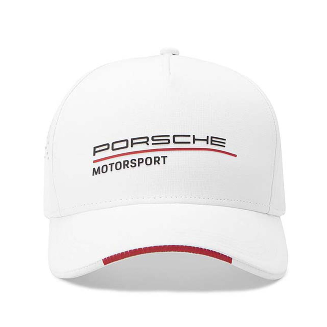 Porsche Motorsport Cap in weiß Sportliche weiße Cap vom Team Porsche Motorsport für Erwachsene. Größenverstellbar durch den praktischen Snap-Verschluss. mit Mesh-Einsatz tolle sportliche Optik Einheitsgröße – verstellbar großes Porsche Logo auf der Vorderseite aus 100% Polyester hergestellt Die weiße Cap ist Teil der offiziellen Porsche Motorsport Kollektion welche neben Caps noch weitere Produkte wie Jacken Shirts Accessoires und mehr mit Porsche Motorsport-Branding beinhaltet. Die Porsche Motorsport Cap in weiß für Erwachsene. Hergestellt aus 100% Polyester.