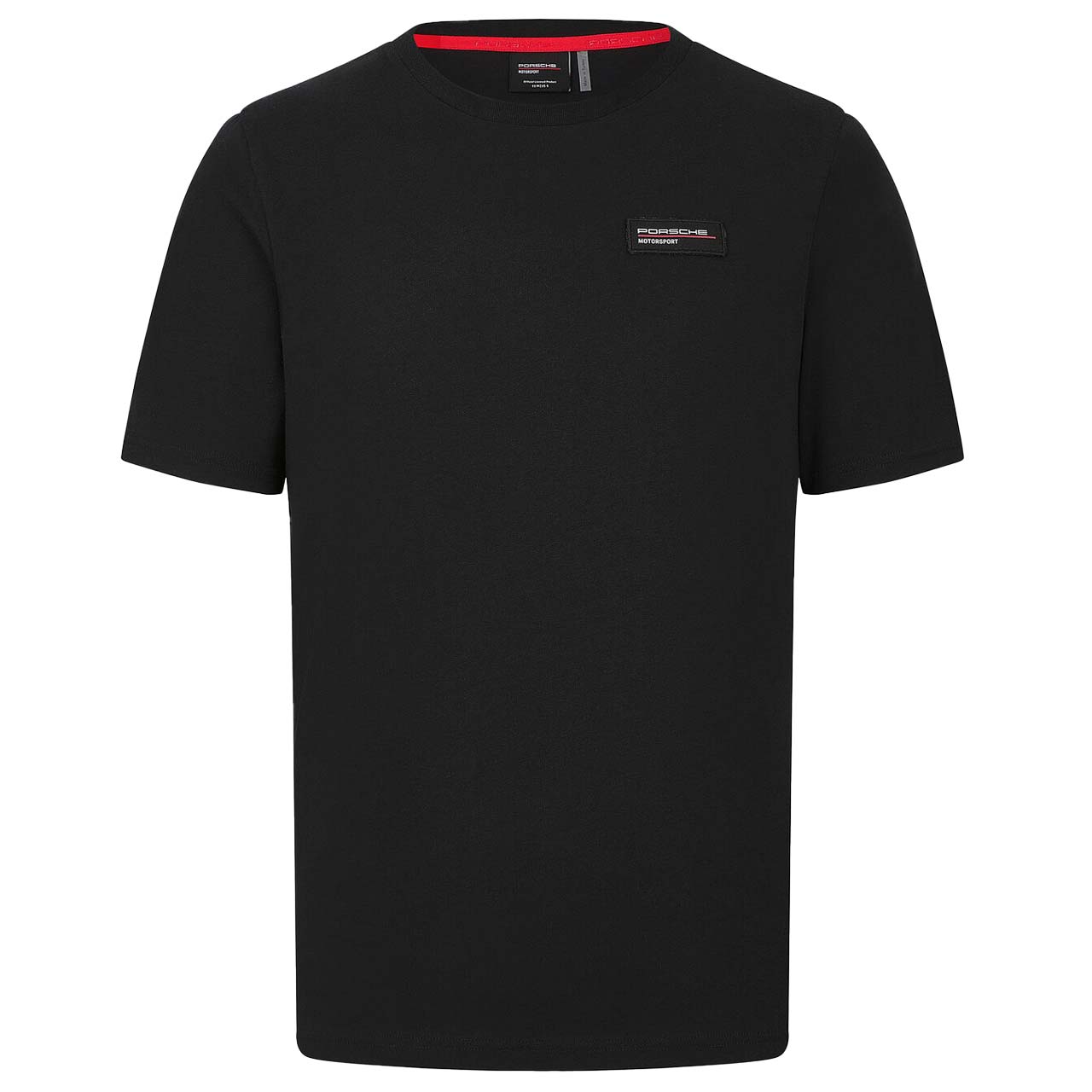 Porsche Motorsport T-Shirt Logo in schwarz Das T-Shirt aus hochwertiger Baumwolle im markanten Porsche Motorsport Design. Neben dem Porsche Motorsport Logo auf der Vorderseite ist auf der Rückseite ein Porsche Schriftzug seitlich hochkant abgebildet. Abgerundet wird das Designkonzept durch die farblich in rot abgesetzten Applikationen. Porsche Motorsport Kollektion Porsche-Logo auf der Vorderseite Rundhalskragen rote Kontrastnähte aus 100% Baumwolle gefertigt Das schwarze T-Shirt für Herren ist Teil der offiziellen Porsche Motorsport Kollektion welche neben Shirts noch weitere Produkte wie Jacken Sweatshirts Accessoires und mehr mit Porsche Motorsport-Branding beinhaltet. Das Porsche Motorsport T-Shirt für Herren in schwarz. Mit Porsche Motorsport Branding aus 100% Baumwolle gefertigt.