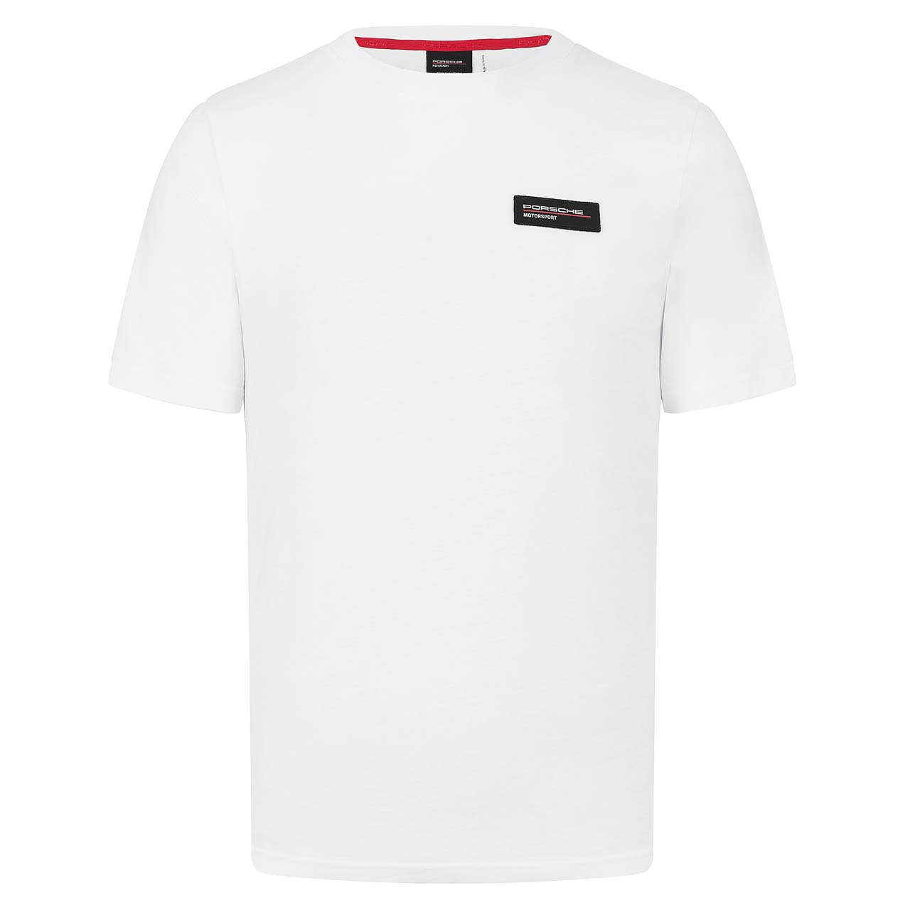 Porsche Motorsport T-Shirt Logo in weiß Das T-Shirt aus hochwertiger Baumwolle im markanten Porsche Motorsport Design. Neben dem Porsche Motorsport Logo auf der Vorderseite ist auf der Rückseite ein Porsche Schriftzug seitlich hochkant abgebildet. Abgerundet wird das Designkonzept durch die farblich in rot abgesetzten Applikationen. Porsche Motorsport Kollektion Porsche-Logo auf der Vorderseite Rundhalskragen rote Kontrastnähte aus 100% Baumwolle gefertigt Das weiße T-Shirt für Herren ist Teil der offiziellen Porsche Motorsport Kollektion welche neben Shirts noch weitere Produkte wie Jacken Sweatshirts Accessoires und mehr mit Porsche Motorsport-Branding beinhaltet. Das Porsche Motorsport T-Shirt für Herren in weiß. Mit Porsche Motorsport Branding aus 100% Baumwolle gefertigt.