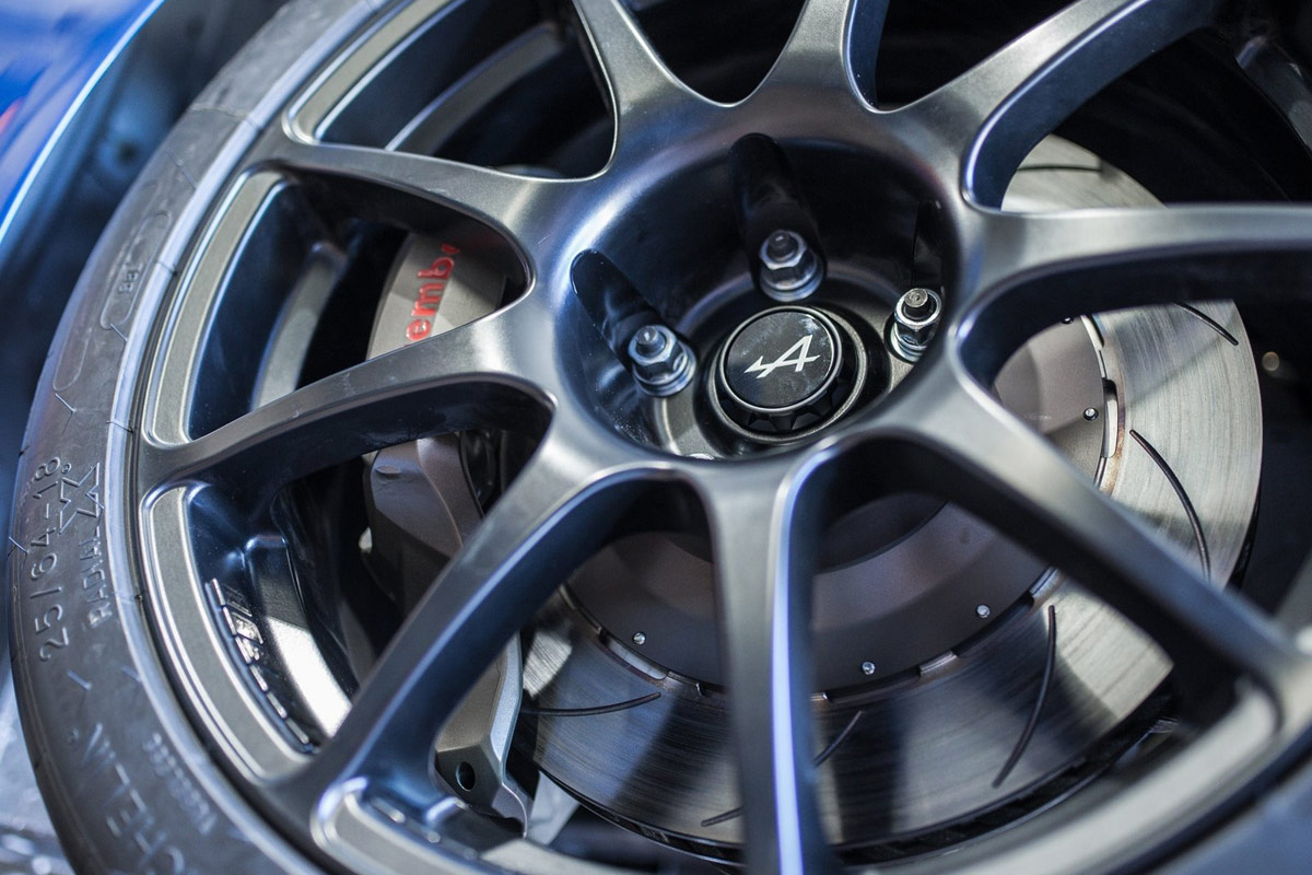 Das überarbeitete Fahrwerk bringt die Cup-Version des A110 im Vergleich zur Serie 40mm näher an die Strecke. Ein versteiftes Chassis sorgt in Verbindung mit dem eingebauten Überrollkäfig für noch mehr Performance in den Kurven. Um den französischen Cup-Renner zu stoppen bedienen sich die Franzosen aus dem Angebot von Brembo.